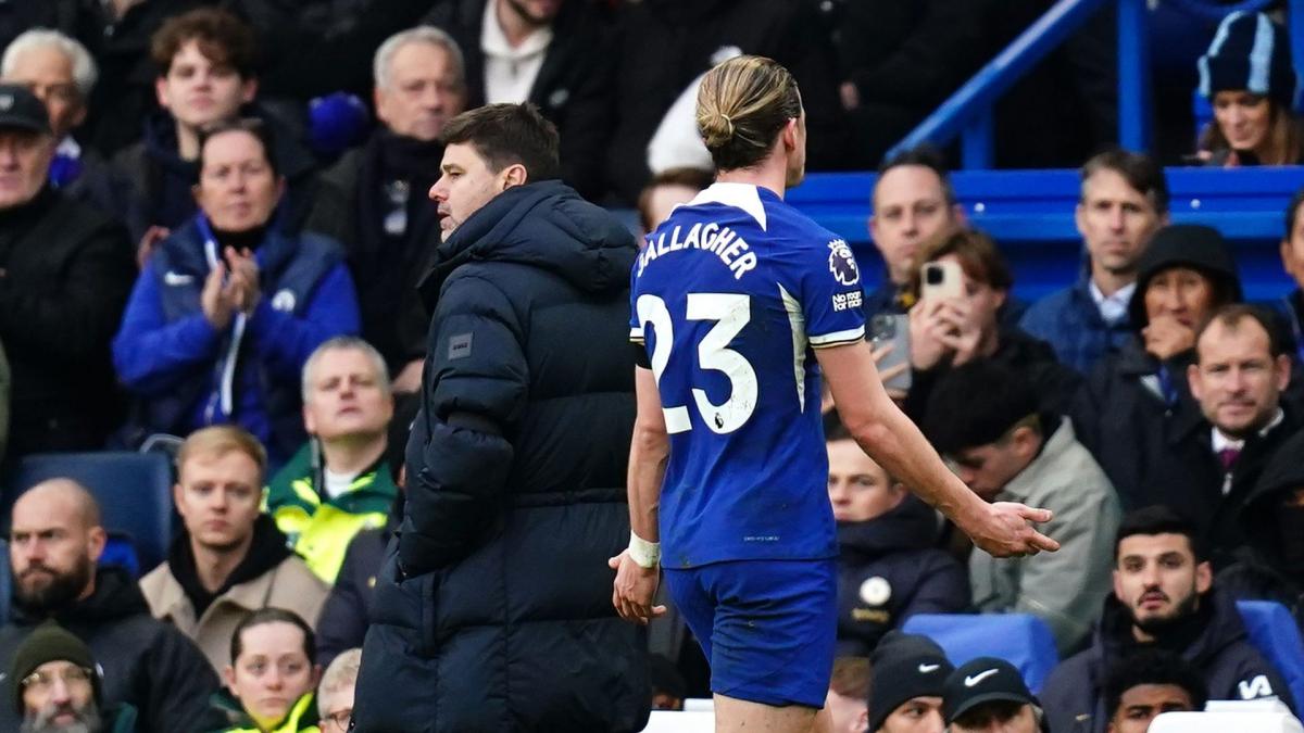 En fin de contrat en juin 2025, Conor Gallagher (24 ans) voit son avenir être en suspens. Le milieu de terrain des Blues, en forme récemment avec quatre buts marqués en six matchs, n’a pas encore prolongé avec l’écurie londonienne et des doutes subsistant autour de son futur. Interrogé à ce sujet en conférence de presse, l’entraîneur Mauricio Pochettino a tout de suite rappelé qu’il n’était pas l’homme de la situation dans ce dossier.